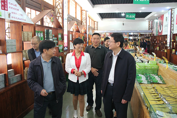 在刘小英董事长陪同下参观花枝茶展厅